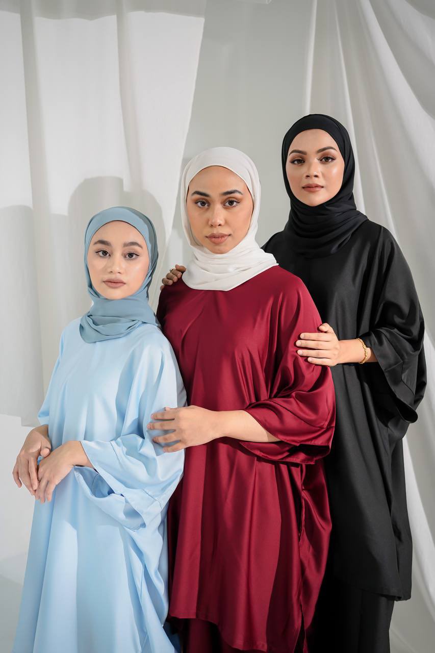 J Labella Atelier Ready Made Designer Contemporary Kurung Dresses Jubah Theme Color Maroon Burgundy Qisyana Kurung Burgundy